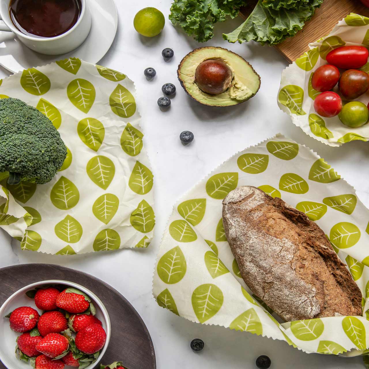 ●セット内容:ビーガンワックスラップ リーブス×4(16x16cm、18x20cm、25x28cm、33x35.5cm)