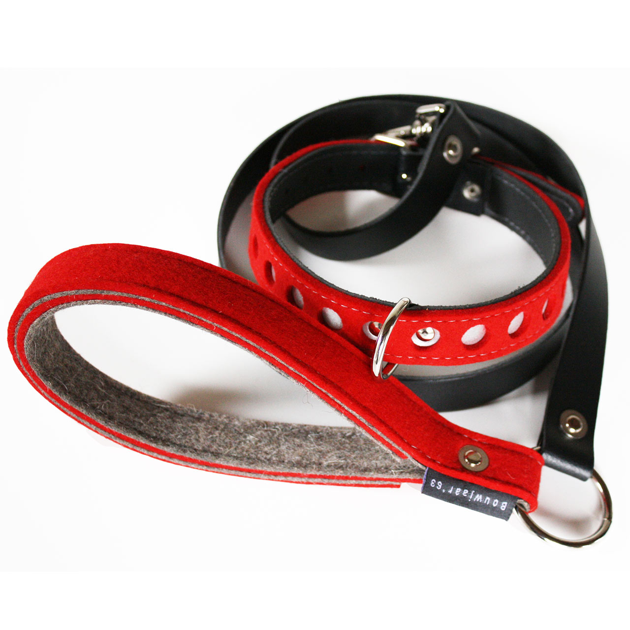 ワンちゃんにはドックカラーとドッグリースを、飼い主さんはバッグのクリッシーを下げて、フェルトでおそろいのコーディネートができます。