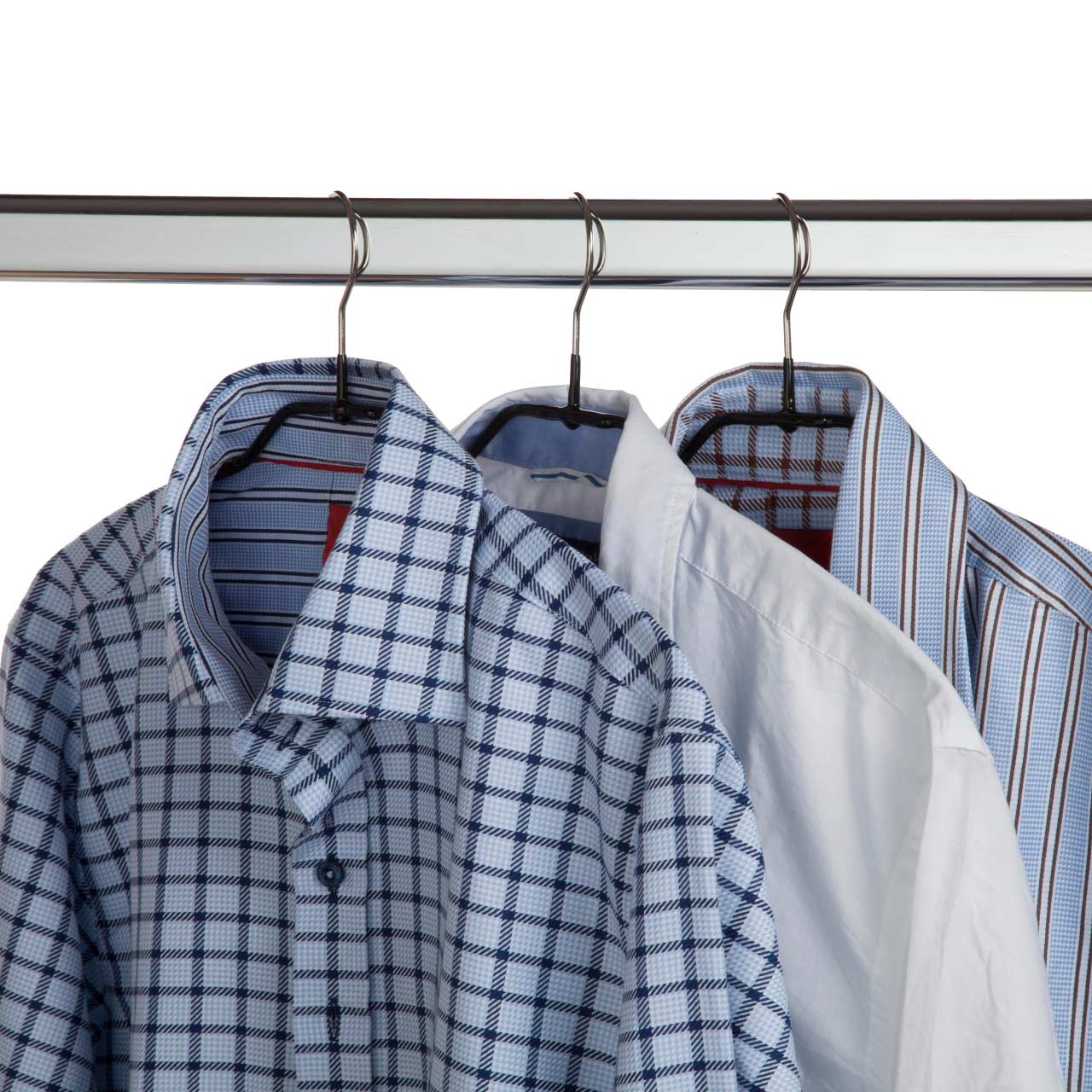 襟周りの形状は、衣類を掛けた時に襟を立ててサポートします。肩の形状は緩やかな曲線は、ワイシャツなど肩がはっきりした衣装も形を崩すことなく収納できます。