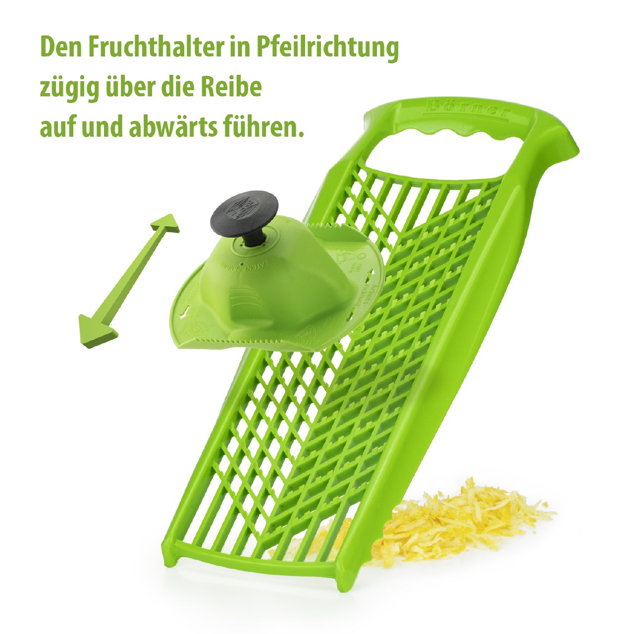 この実用的なグレーターは、2つの機能を持っています。裏面では細かく擦りおろし、前面では細長く擦りおろすことができます。ピザ用のチーズや野菜を擦りおろすのに最適です。トマト、バナナ、リンゴなどの非常に柔らかい野菜からピューレを作ることもできます。