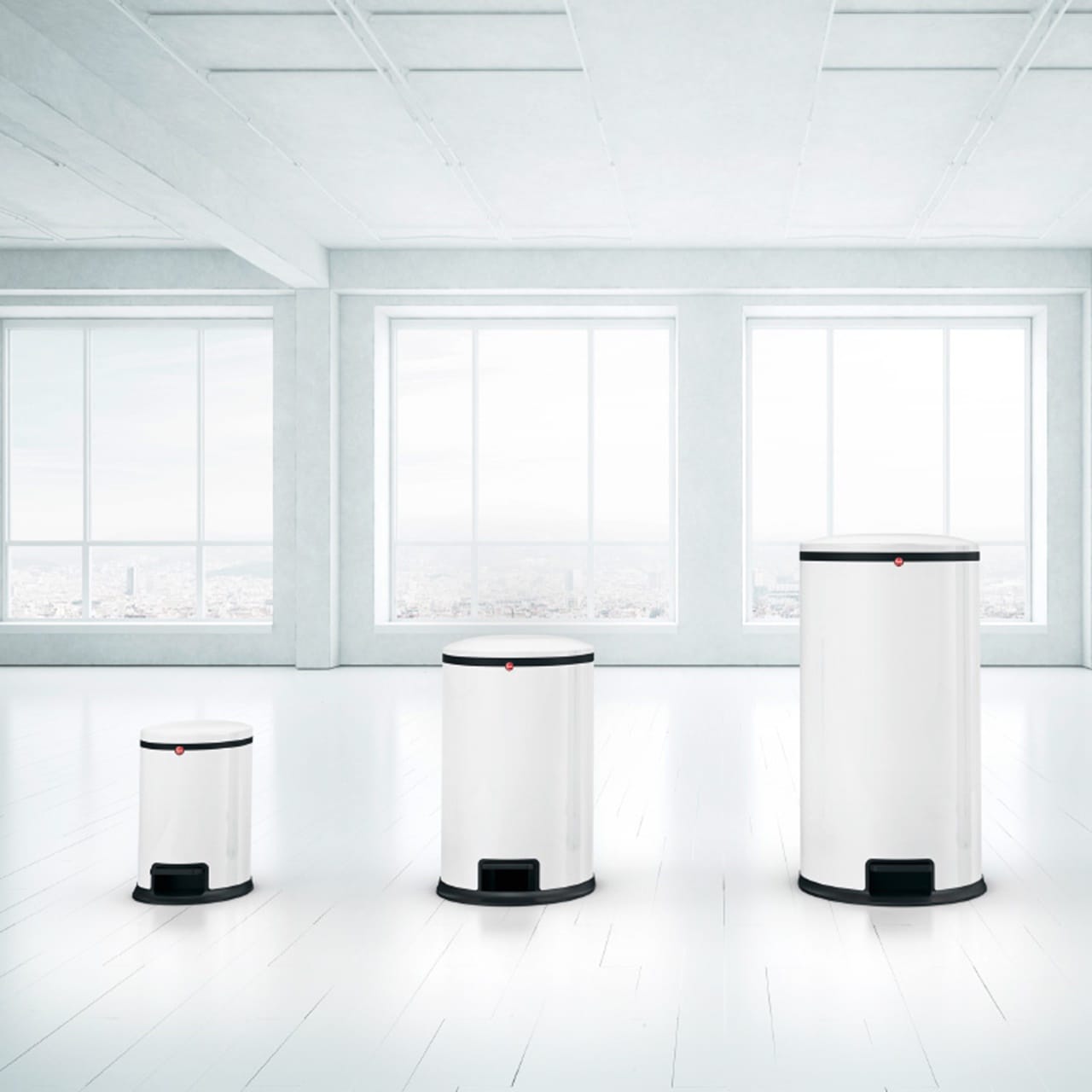 底面には4ヶ所に滑り止めが付いて、フットペダルを踏んだ時にゴミ箱が動くのを防ぎます。蝶番部分は持ち手にもなっており、ミニマムなデザインでも多様な機能を備えています。