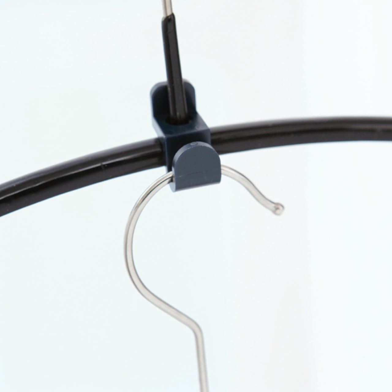 また、パンツシングルのようなボトムスハンガーは、フックの形状からコネクターの取り付けができません。他のハンガーに取り付けたコネクターに掛ける方のハンガーとしてご使用ください。