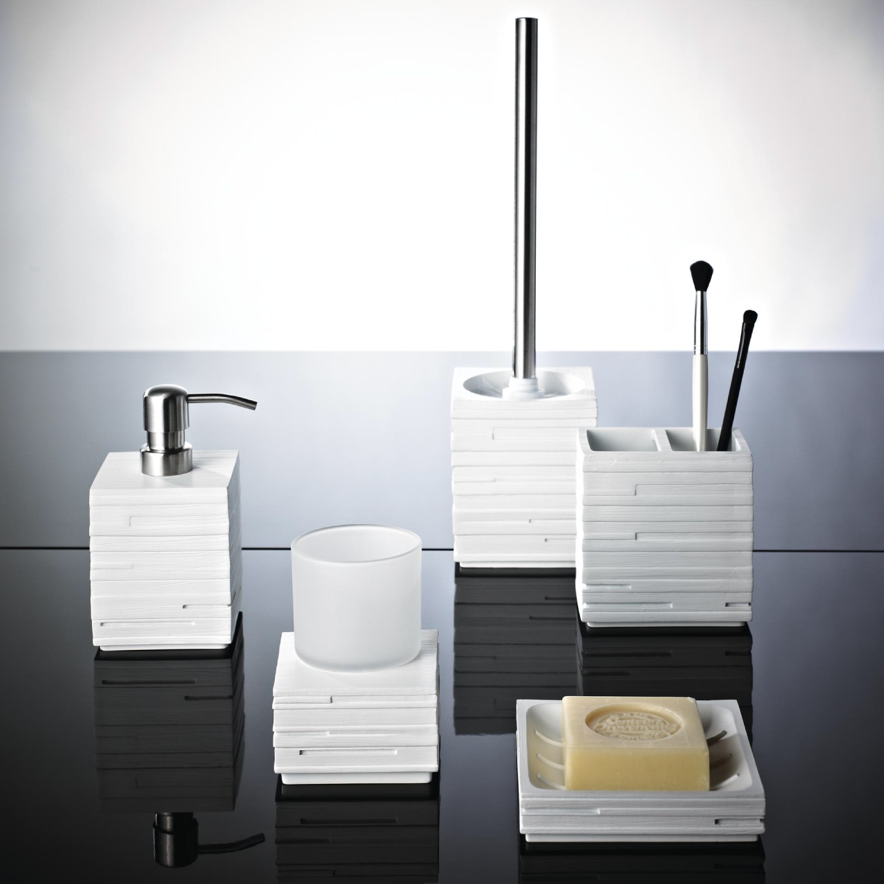シンプルで品のあるデザインなので、様々な材質・色のバスルームや洗面台と調和します。
