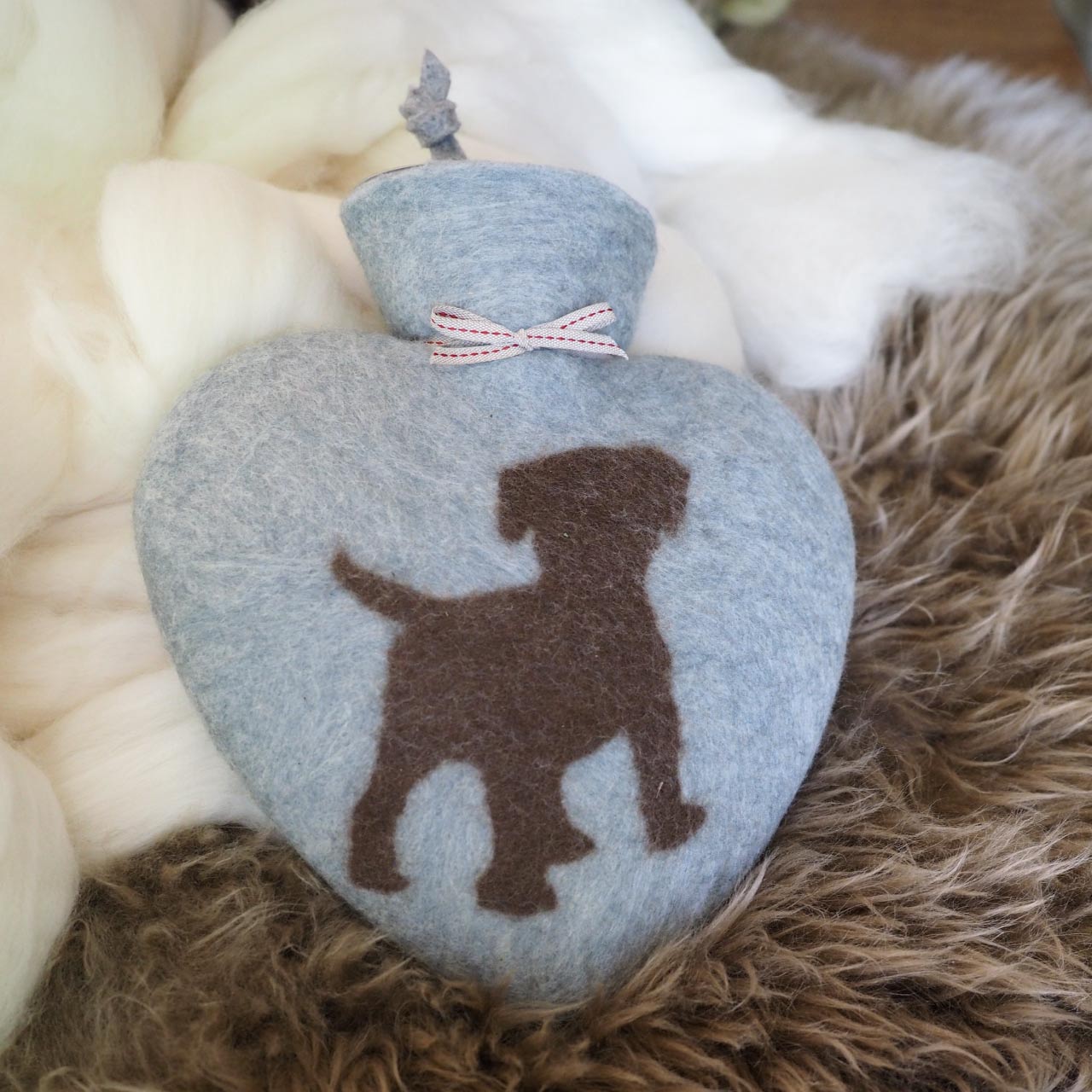 一つ一つ丁寧にフェルティングされており、デザインも一つずつ表情の違いを楽しめます。かわいらしいコイヌのシルエットのデザインです。ボトルは安心のドイツ品質。fashy社製です。