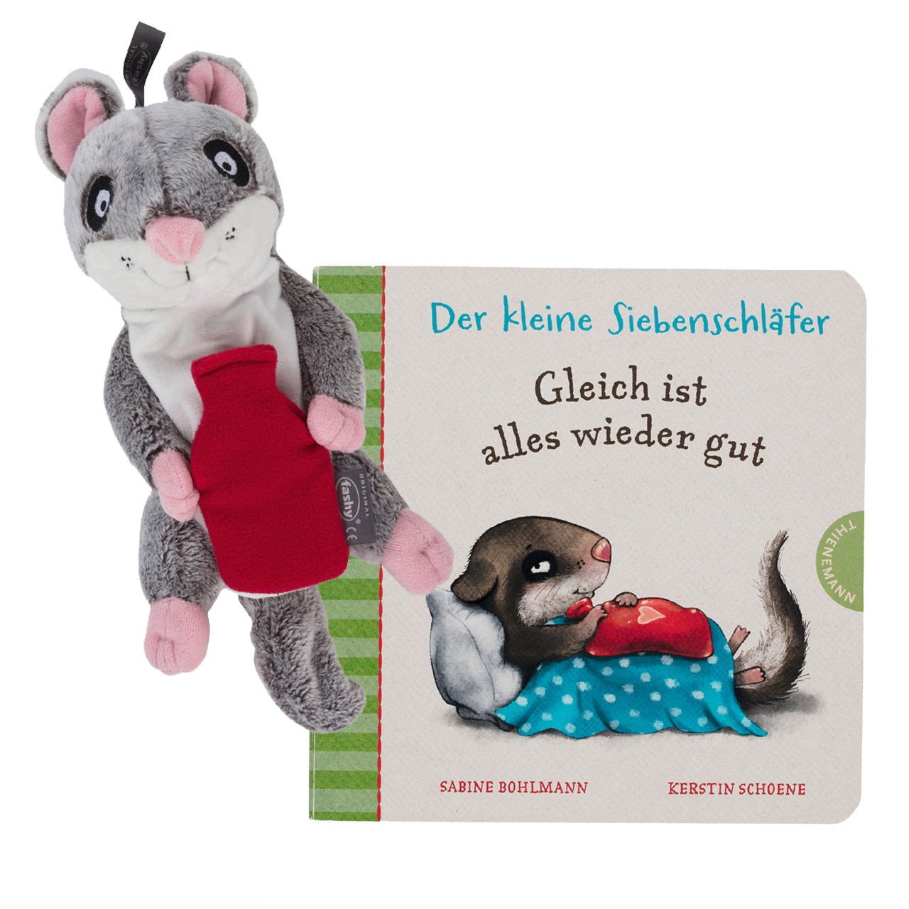 ヒートパックレープシード すぐに良くなるよ はドイツの絵本「すぐに良くなるよ」の主人公、ヤマネのぼうやのぬいぐるみカバーです。物語になぞらえて、湯たんぽを持つ姿がかわいく再現されています。