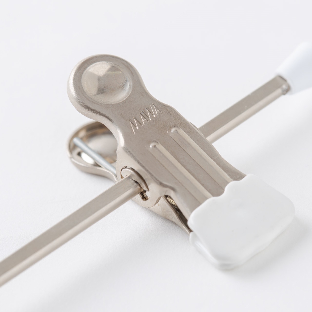 二つのクリップは左右に動くので、用途に合わせて適当な間隔にセットしてください。クリップを開いた状態にすると左右にスムーズに動き、クリップを閉じると場所が固定される仕組みです。