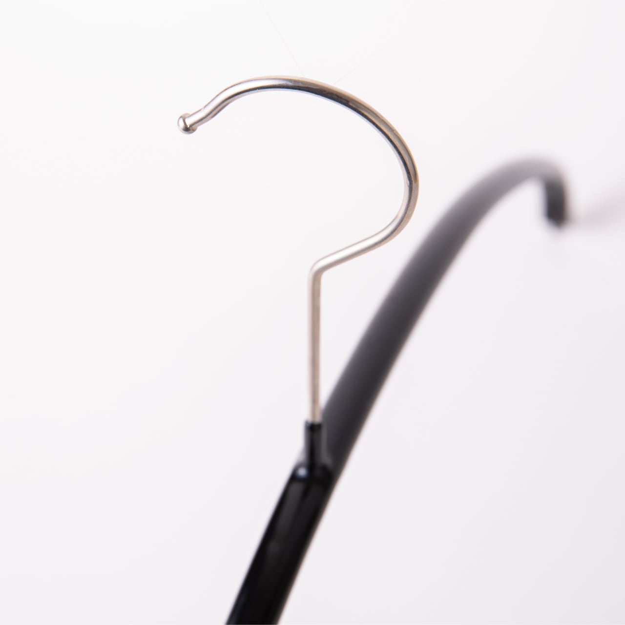 肩先の緩やかなカーブは衣類を引っ張ることなく生地を傷めません。