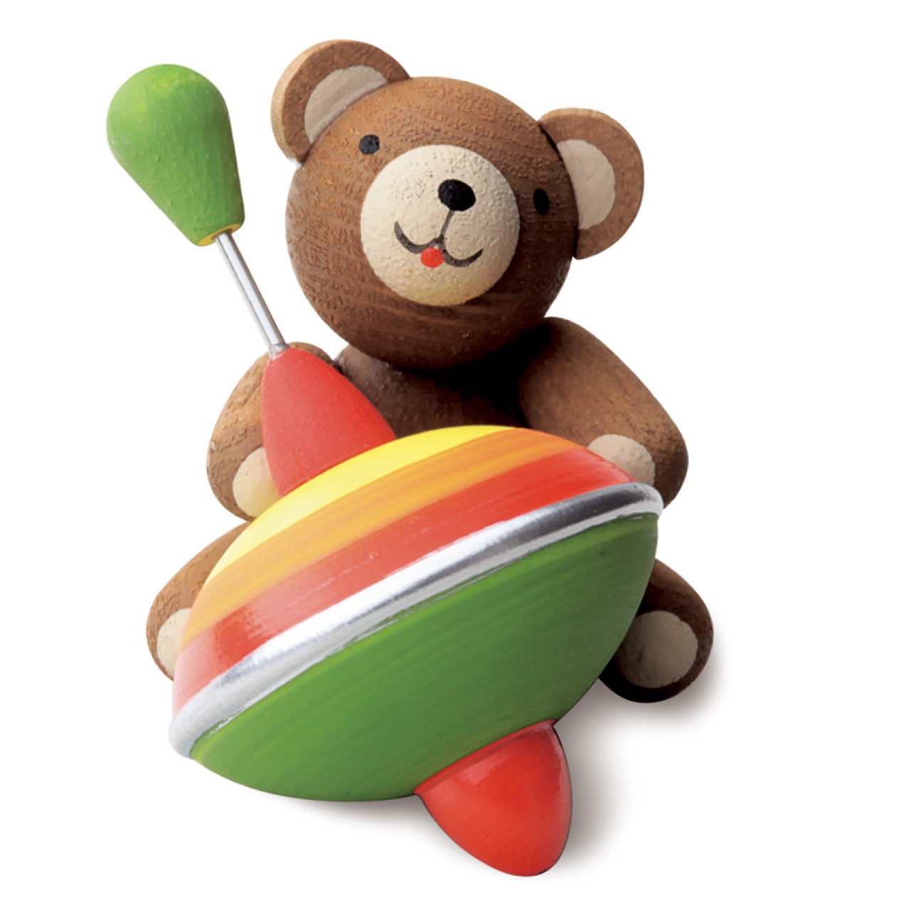 カラフルなコマを持ったベアーの表情から嬉しそうなのが伝わってきますね。今にもコマで遊びだしそうなかわいらしいベアーにほっこりします。柔らかな曲線のフォルムは木目を生かしたそのデザインと相まって、愛らしい表情を際立てています。